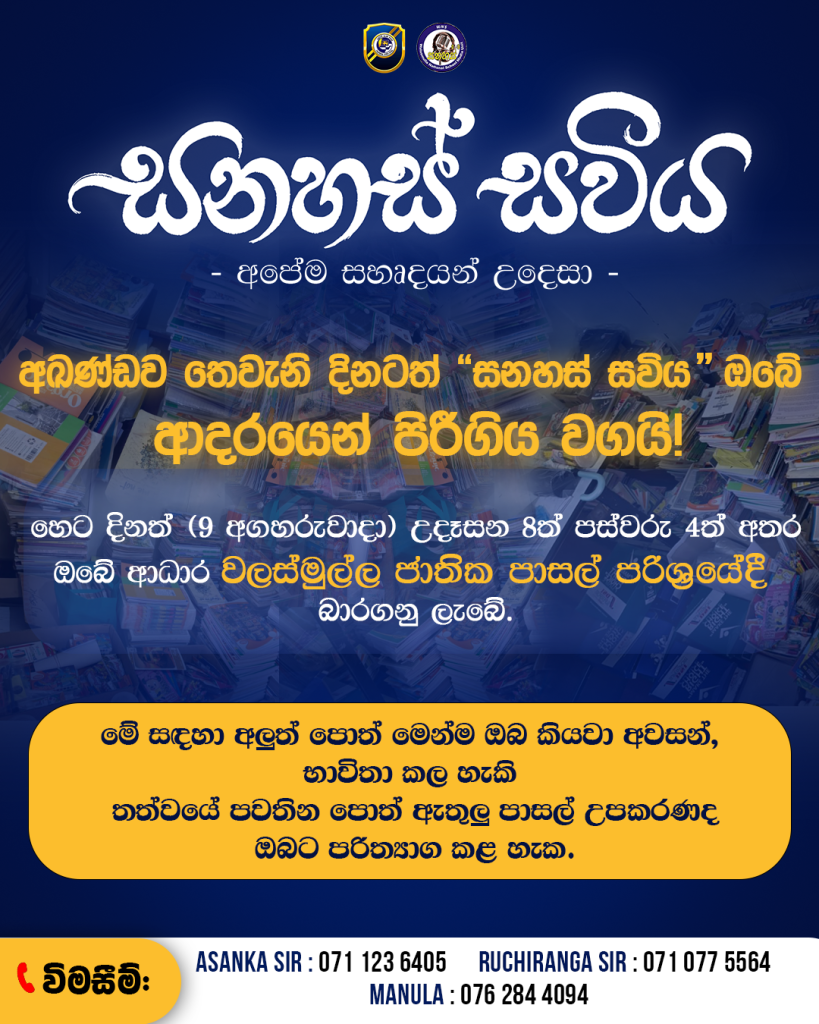 ආපදාවට ලක්වූ අපේම සහෘදයන්ගේ පාසලක පුස්තකාලකට අවශ්‍ය සියලු පොත් පත් ලබා දීමට වලස්මුල්ල ජාතික පාසල් අපි සූදානම්!
